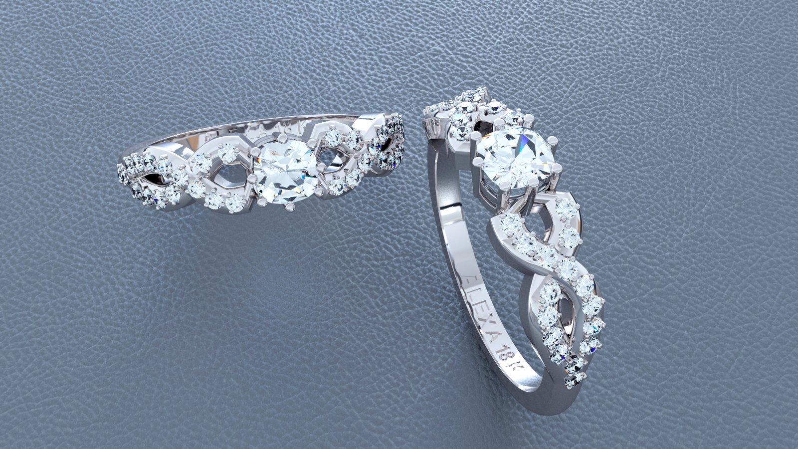 Anillo de compromiso de oro 18 k. blanco o amarillo. peso 3,5 grs. aprox. lleva un diamante de moisanita cushing de 4×4, mas 32 diamantes de moisanita redondos de 1,2 mm. c/u. Consulte precio con piedras naturales.