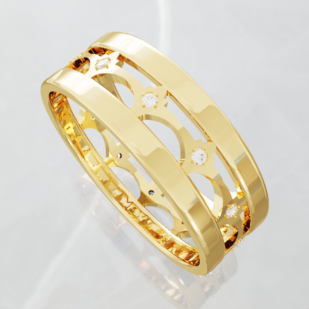 Anillo para dama de oro 18 k. de oro amarillo, pesa 4. grs aprox. lleva 12 diamantes de 1.1 mm. c/u. 6 ptos. total. ( SI- 1- GH )