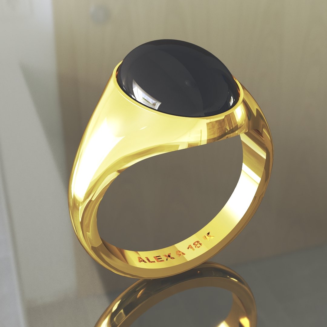Anillo sello masizi de oro 18 k. amarillo, peso aprox. 10 grs. lleva un cabuchon onix de 14×10 mm. Consulte por otro tipo de piedra.