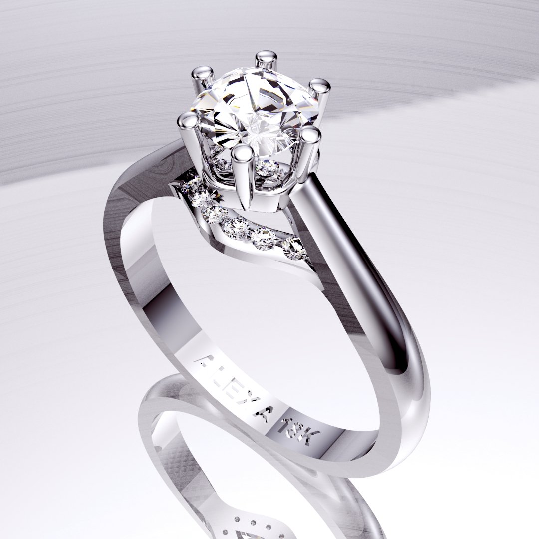 Anillo de compromiso de oro 18 k. banco o amarillo. peso 4 grs. aprox. lleva un diamante de mosanita de 5 mm central mas 12 diamantes de moisanita laterales. Consulte precio con piedras naturales.