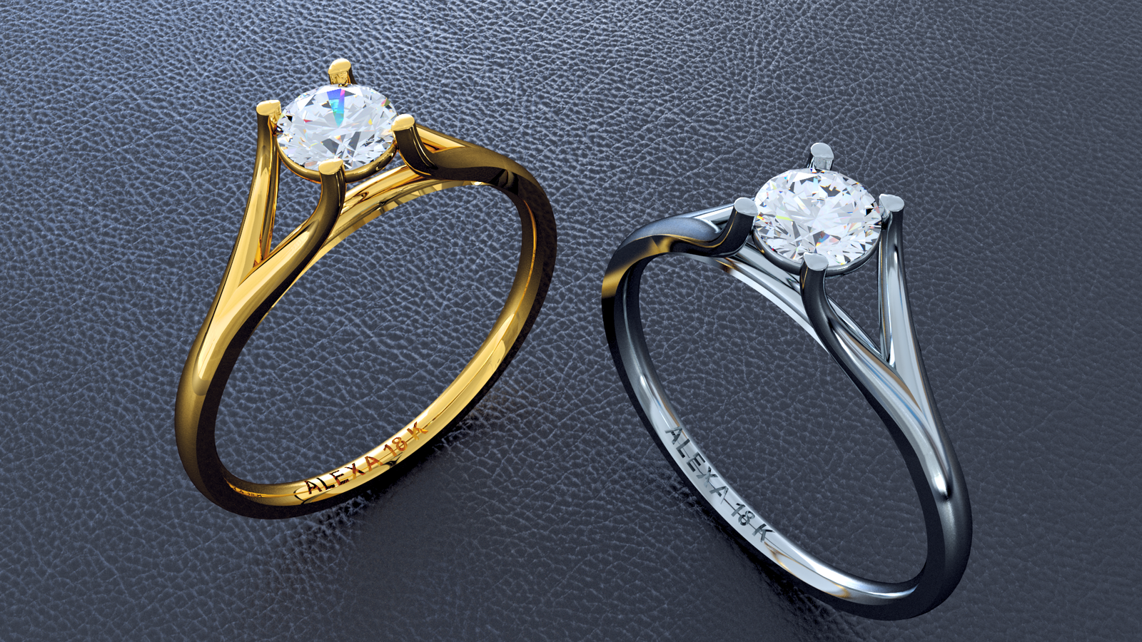 Anillo de compromiso de oro 18 k., blanco o amarillo peso 3 grs. aprox. lleva un diamante de moisanita de 4,5 mm central. Consulte precio con piedra natutal.